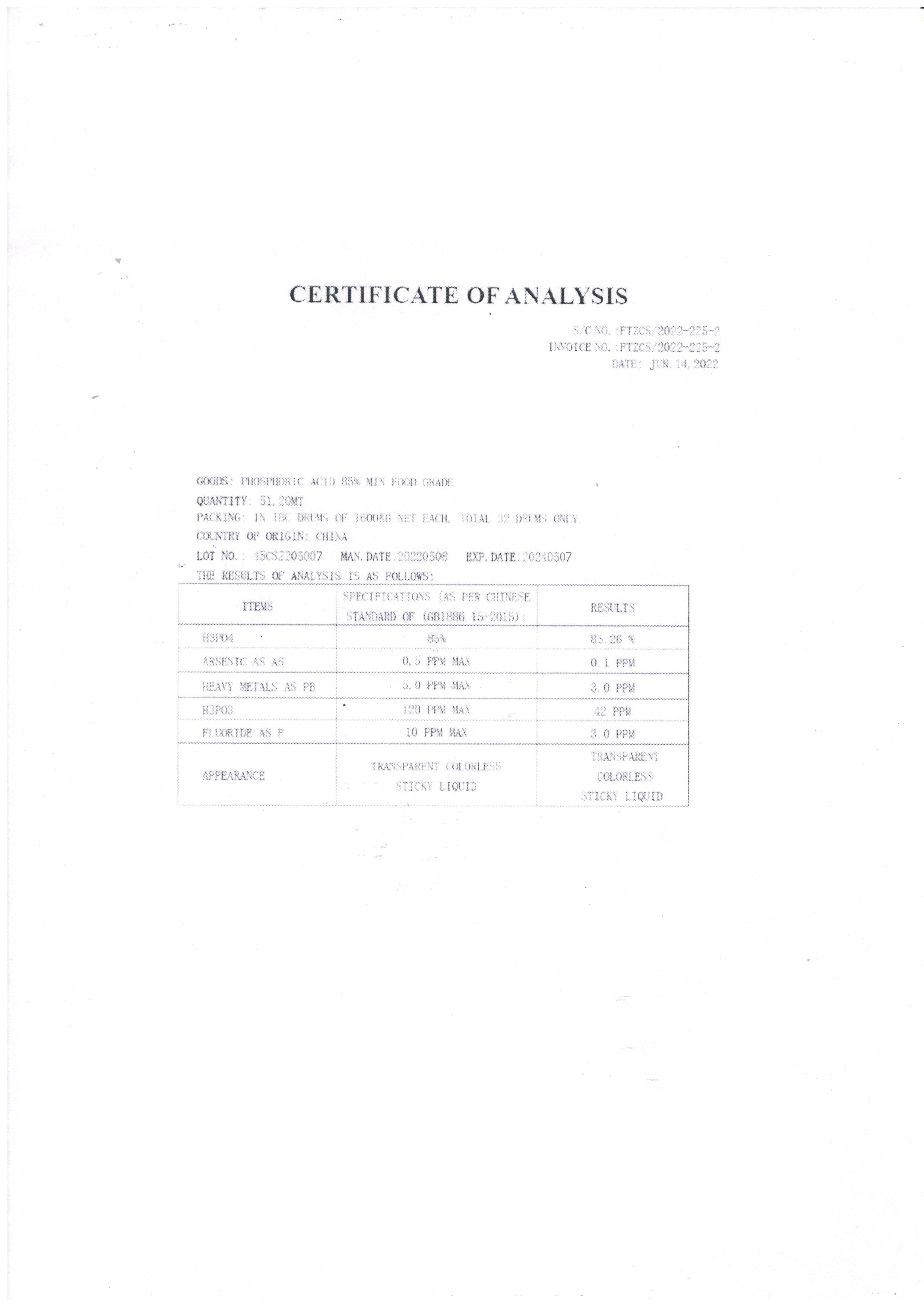 PHOSPHORIC ACID CHINA