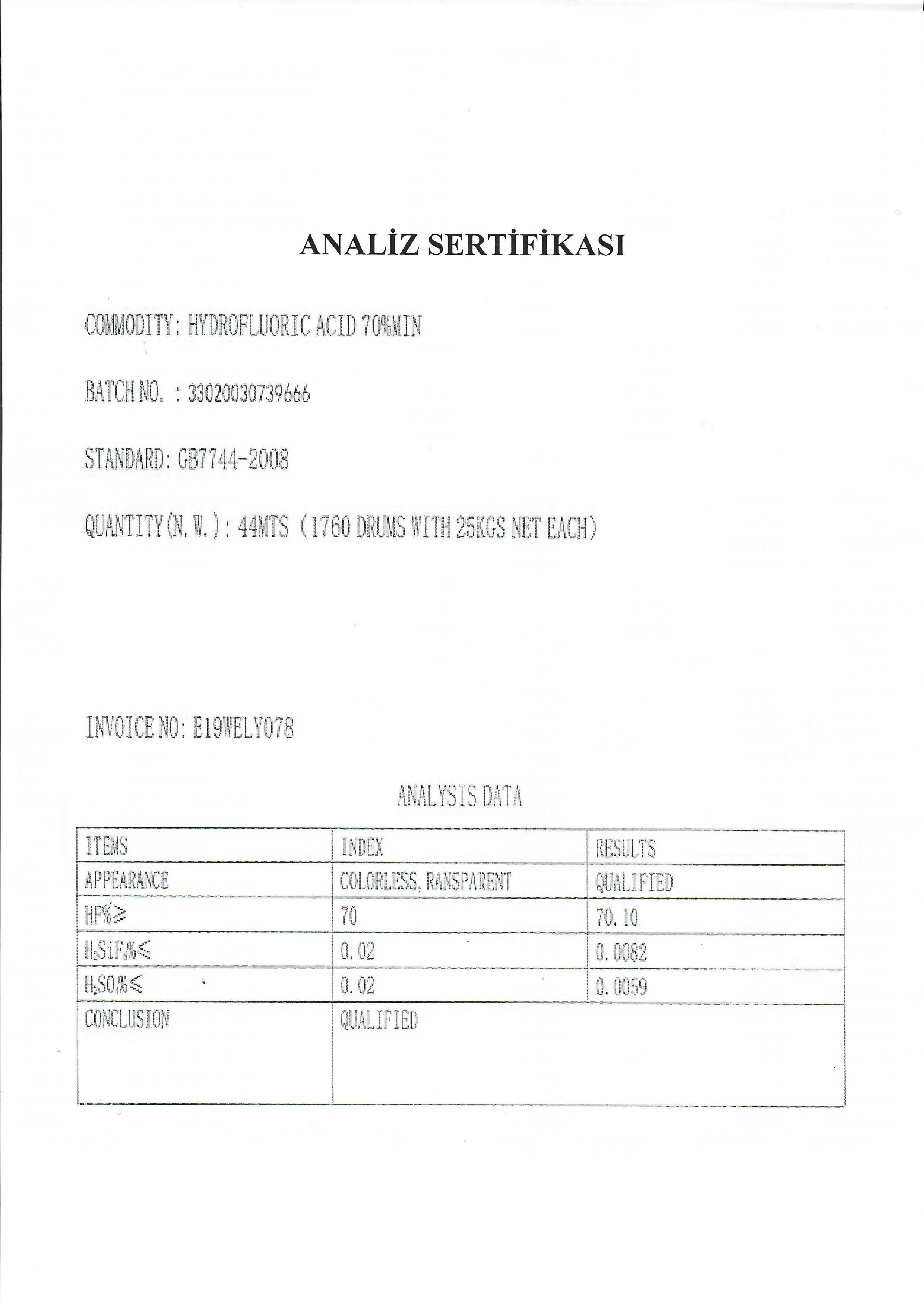Although the chemical formula is a weak acid type of HF, the effects are very strong. Because they have a corrosive effect, they cannot be stored in glass bottles. They should only be stored in low density poly ethylene plastic containers. Anhydrous hydrogen fluoride is a fluid, colorless, clear and high temperature stable liquid. Because it is an extremely small molecule and a special acid, it can dissolve almost everything. As a result of contact with the body does not give a feeling of pain, the body absorbed into the bones can be absorbed.