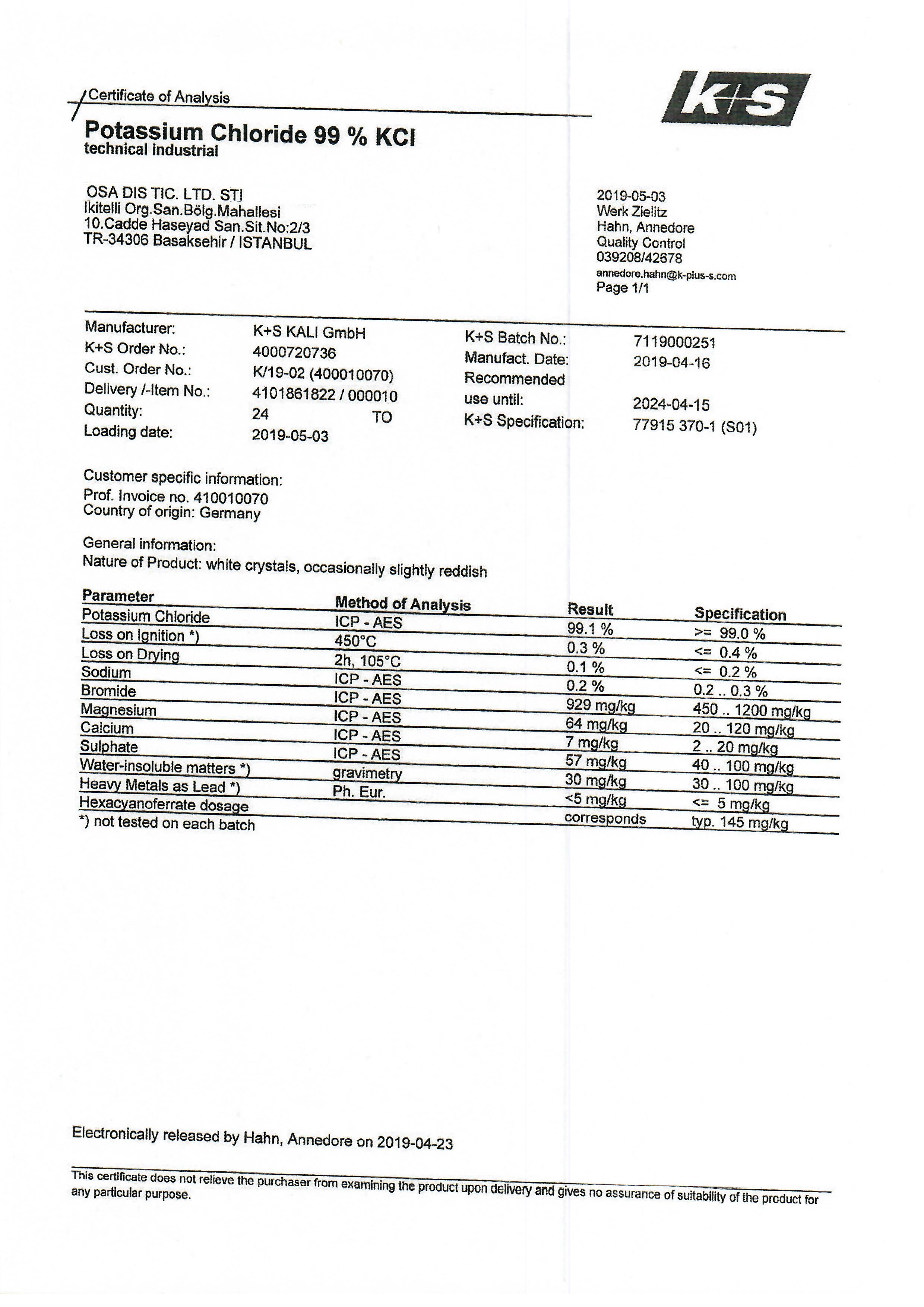 POTASSIUM CHLORIDE GERMANY