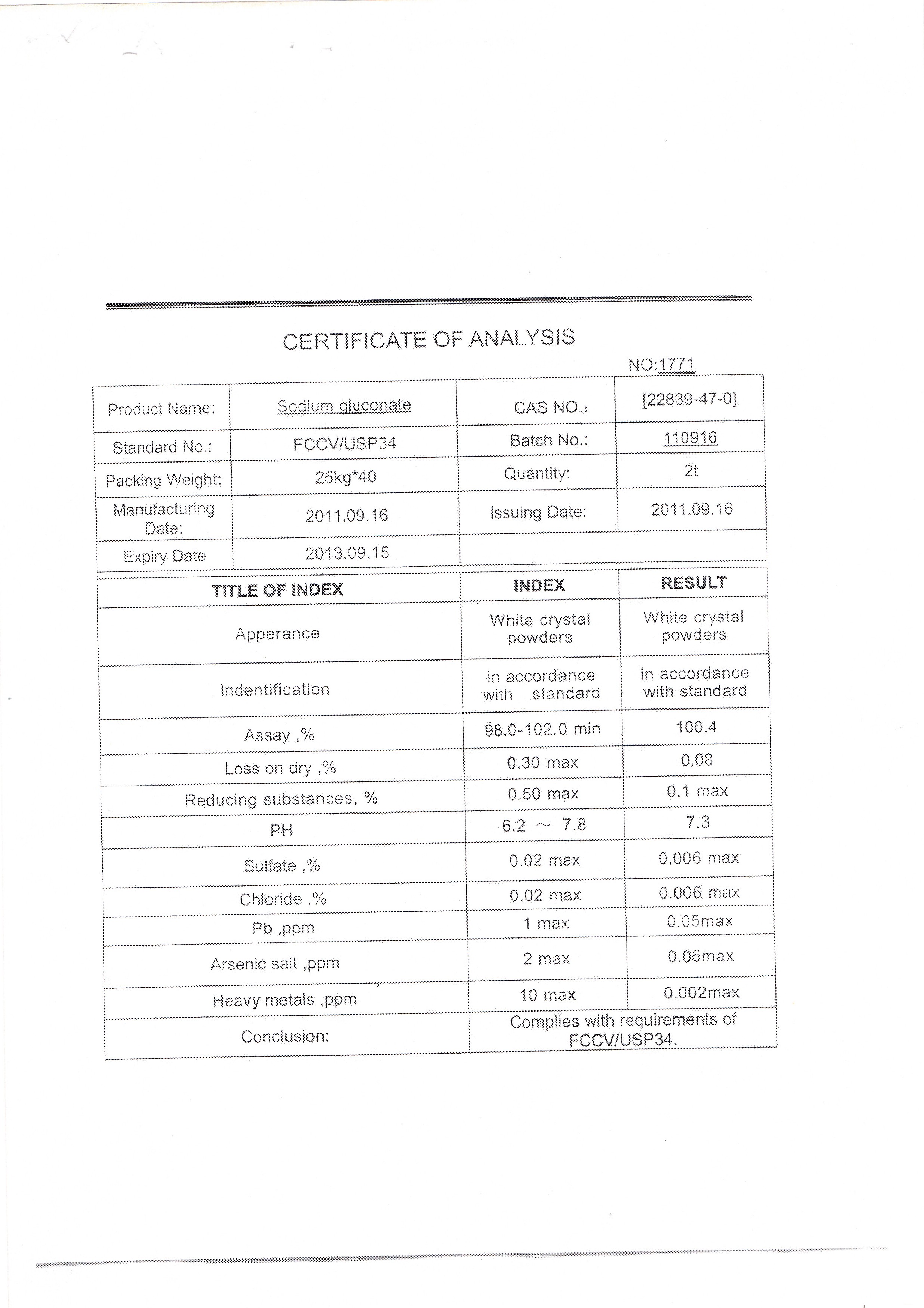 SODIUM GLUCONATE CHINA