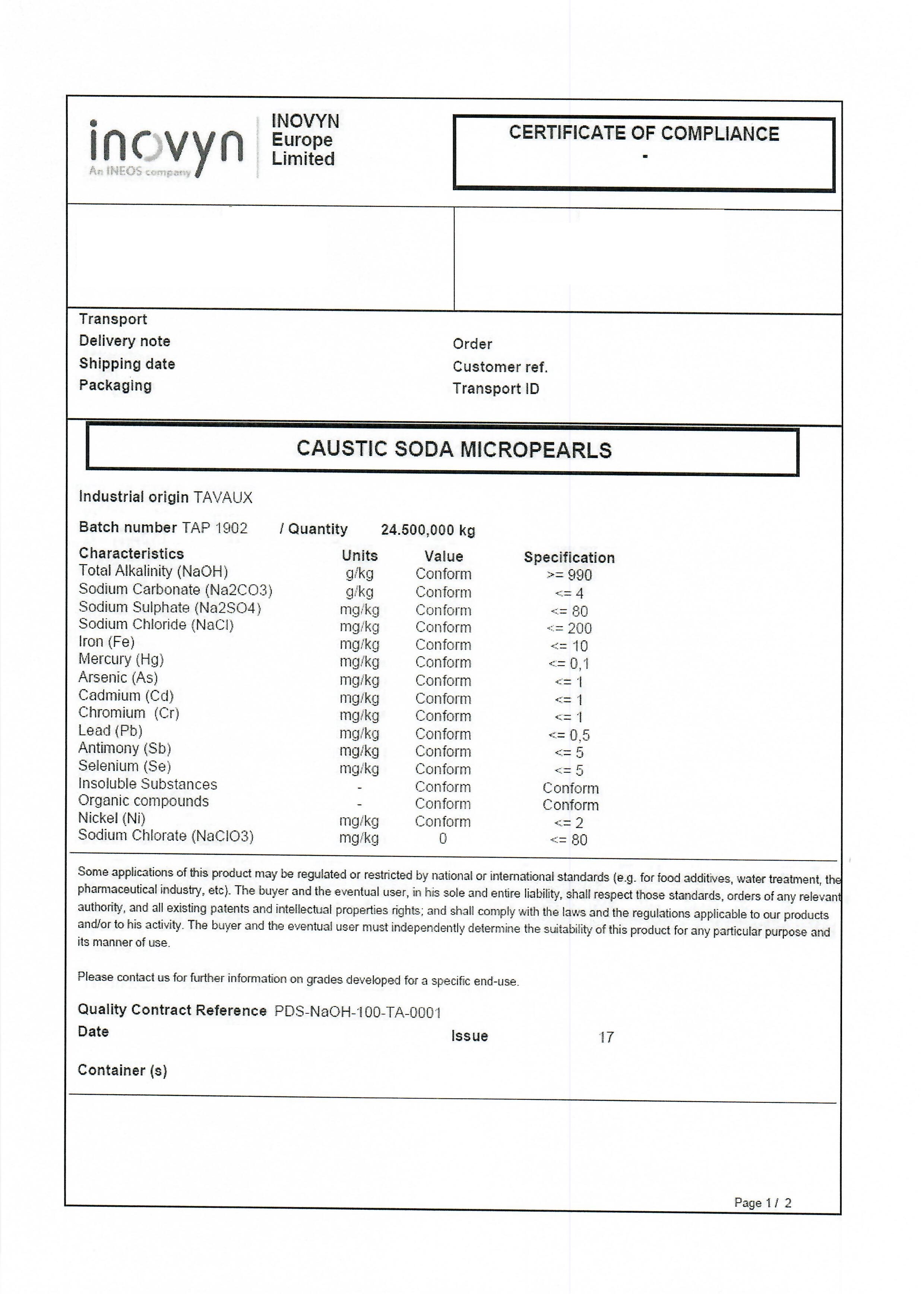 SODIUM HYDROXIDE BELGIUM