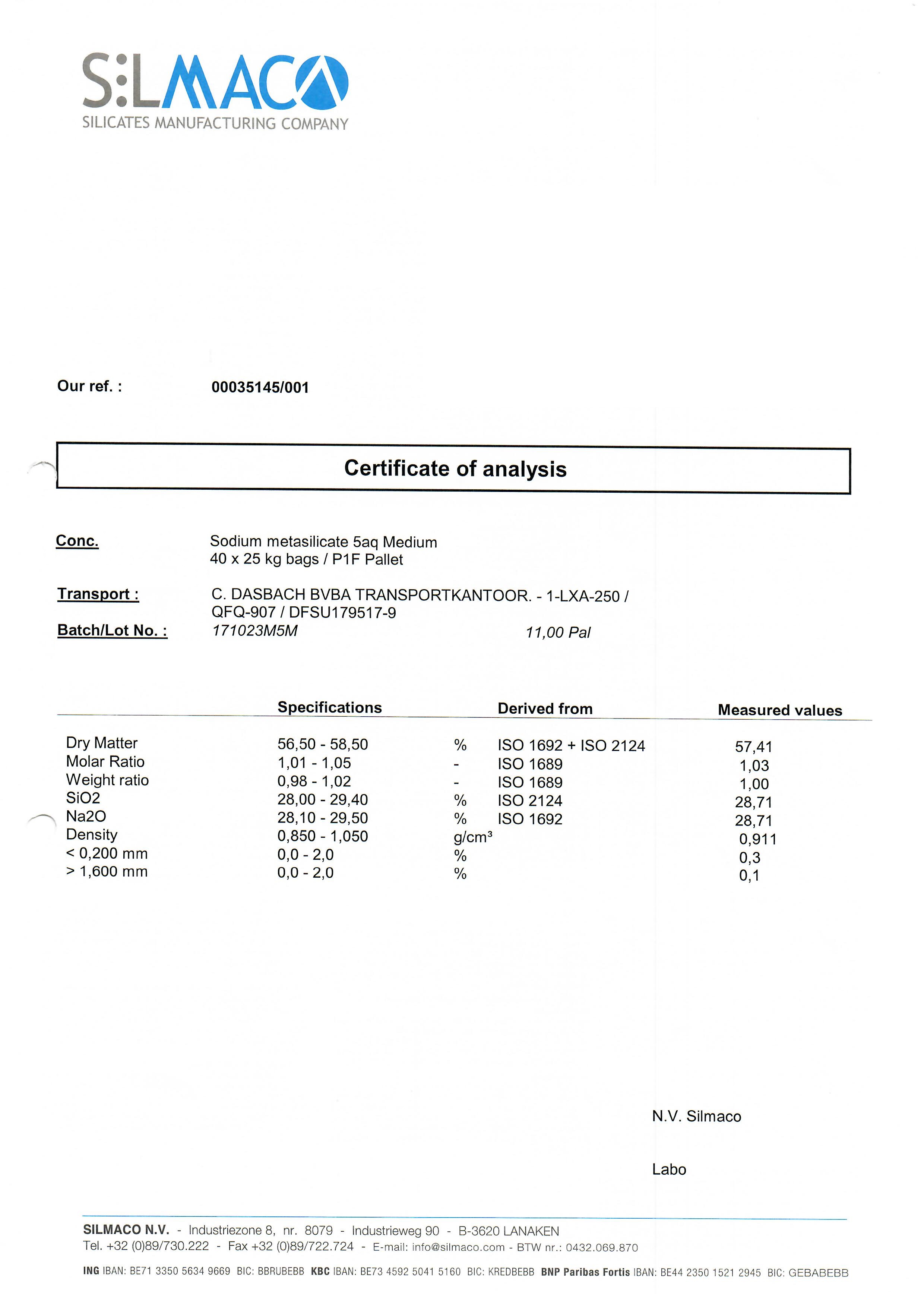 SODIUM METASYLICATE PENTAHYDRATE BELGIUM
