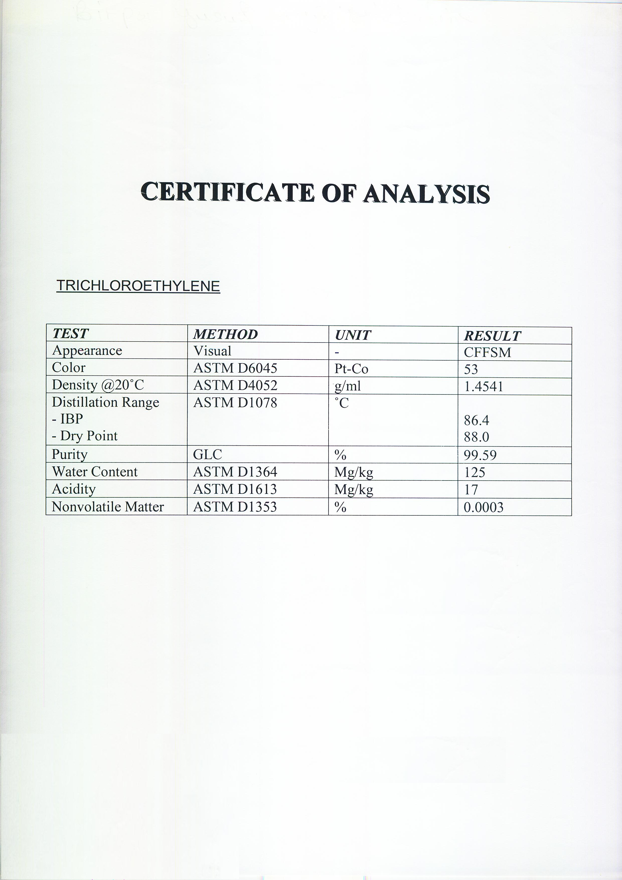 TRICHLOROETHYLENE - CHINA