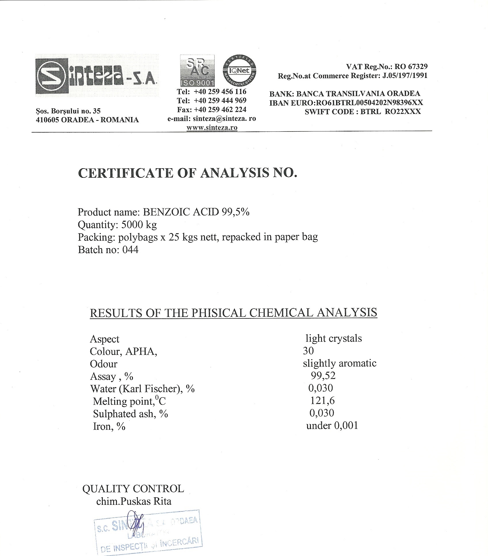 Benzoik asit, 20. yüzyılın ilk dönemlerinde balgam söktürücü, analjezik madde ve antiseptik olarak kullanılmıştır.