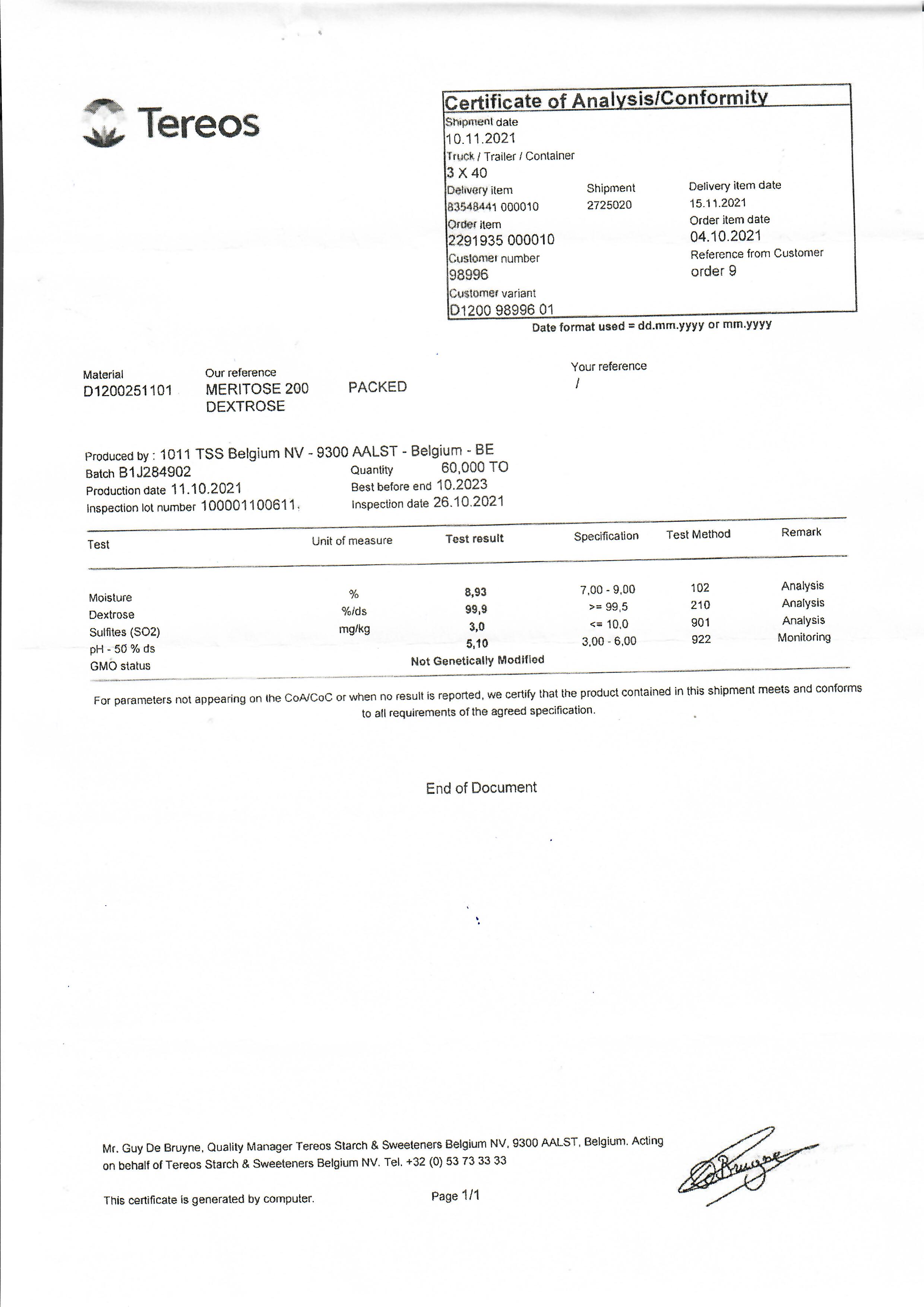 Nişasta hidrolizinin ardından,saflaştırma ve kristalizasyon proseslerinin sonucunda elde edilir.