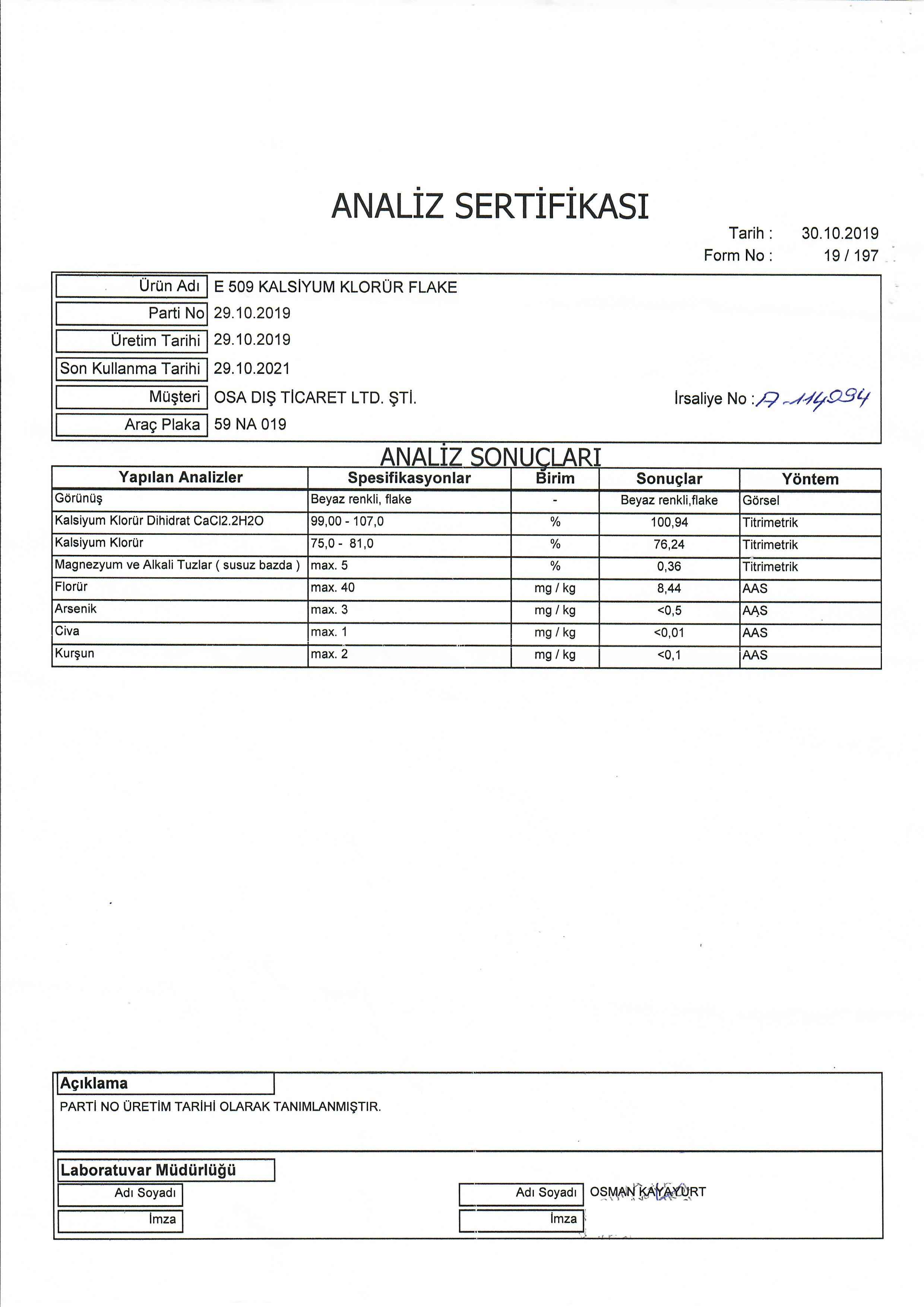 Kalsiyum klorür beyaz renkli toz görünümde olan inorganik bir bileşiktir, CaCl2 kimyasal formülüne sahip bir tuzdur. Oda sıcaklığında beyaz renkli kristalize bir katıdır ve suda oldukça iyi çözünür. HCI ‘nin Ca(OH)2 (söndürülmüş kireç) ile nötrleşme tepkimesi vermesi ile de meydana gelebilir.