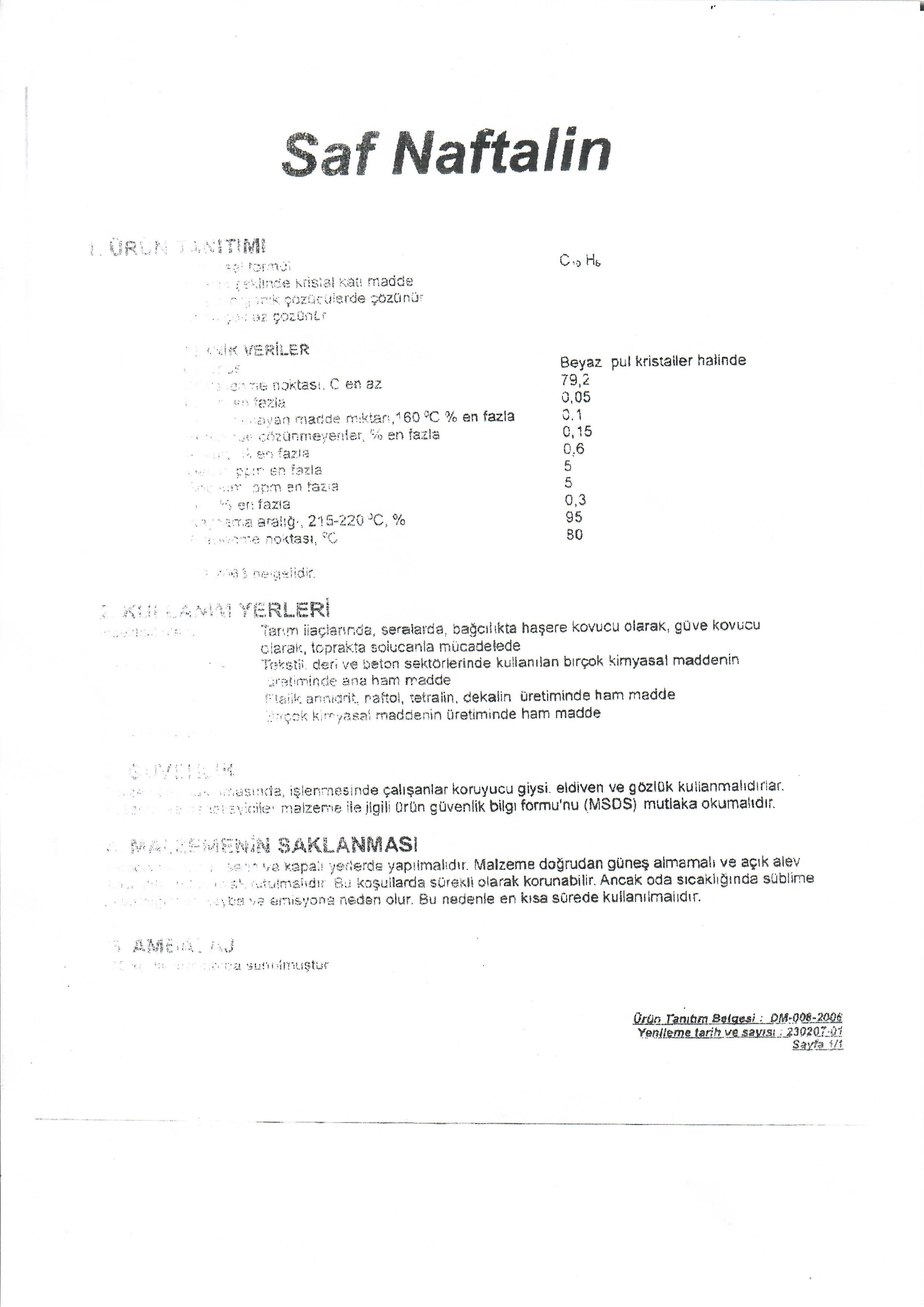Kimyasal bir formül olan naftalin neredeyse her markette bulunur. Ülkemizde yaygın şekilde kullanılan naftalinin kendine özgü, keskin bir kokusu vardır. Naftalin yaygın olarak böcek ilacı olarak kullanılır. Güve, tahta kurdu, hamam böceği, karınca gibi böcekleri uzaklaştırmaya yardımcı olur.