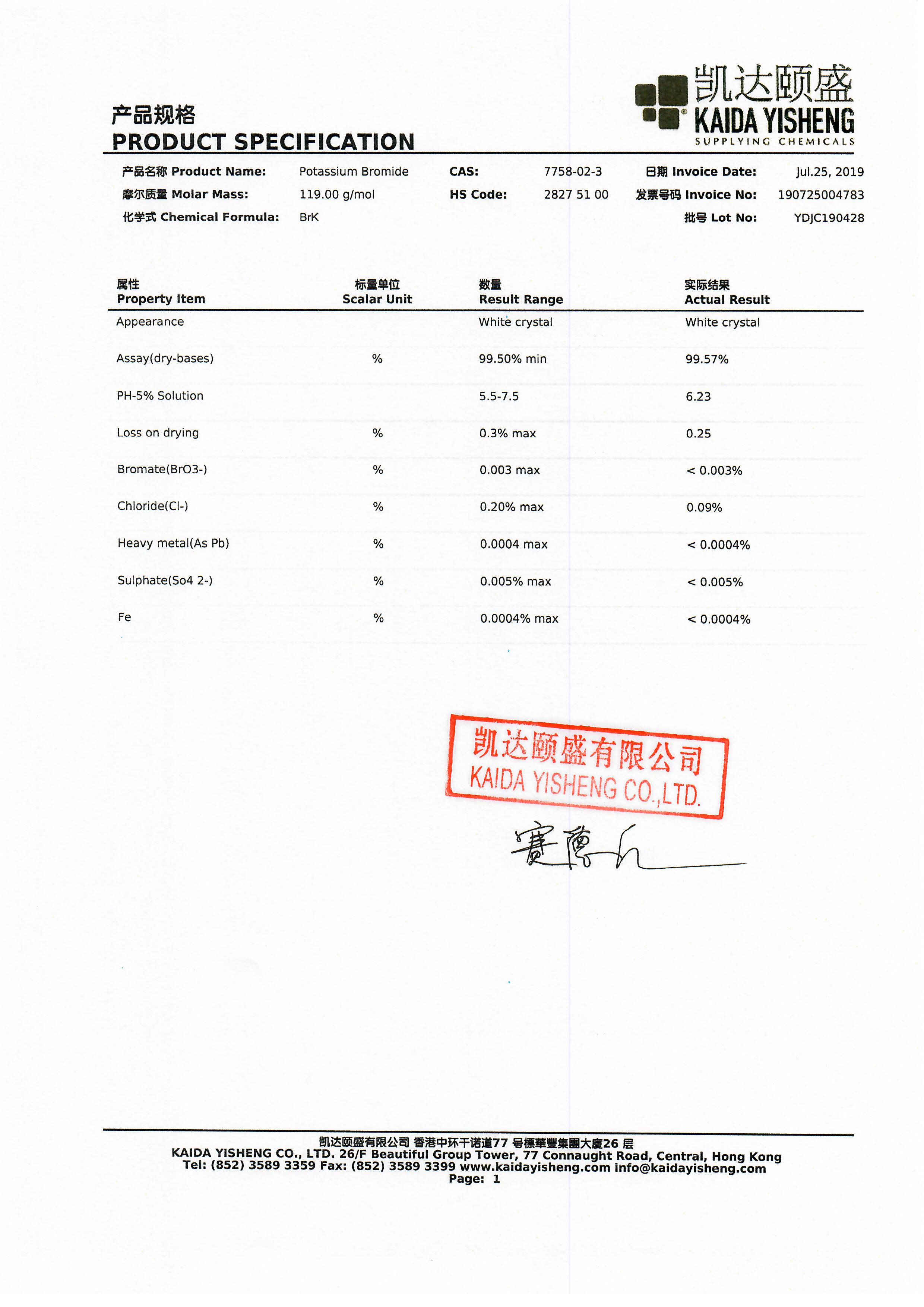 KBr sentezi için geleneksel bir yöntem, potasyum karbonatın su altında hurda demiri fazla brom ile proses edilmesiyle bir demir (III yada II) bromür Fe3Br8 ile reaksiyonudur: