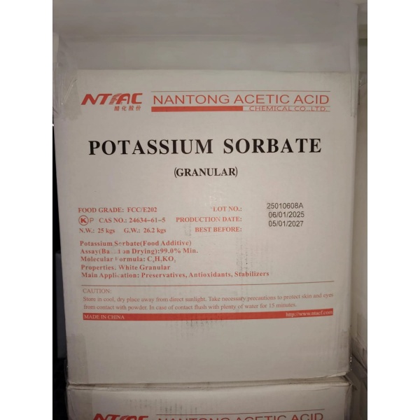 Gıdalardaki katkı maddesi E kodu ise E 202 dir.Gıdalarda, içeceklerde ve kişisel bakım ürünlerinde koruyucu olarak sıklıkla kullanılmaktadır. Sorbik asit ve potasyum hidroksitten sentetik olarak elde edilen kokusuz ve tatsız bir tuzdur.